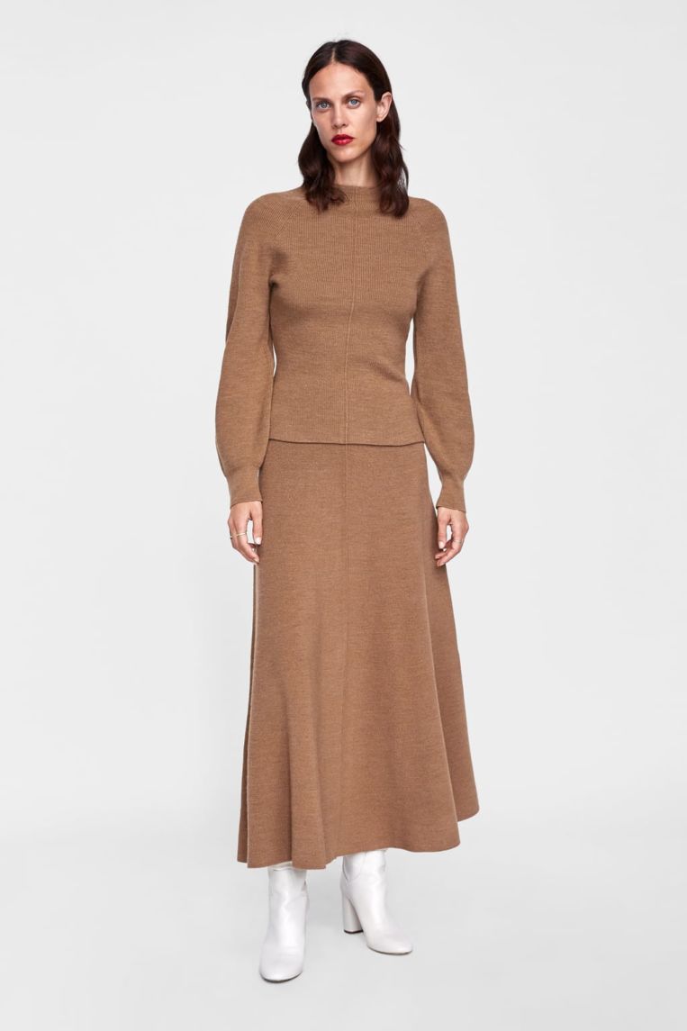 Este conjunto de falda y camisa de hilo minimal es un gran ejemplo de los total looks que vamos a ver en esta temporada, tanto por la textura como por el color y es que el marrón y el naranja serán los colores que más veremos durante este otoño. ¿Qué te parece?