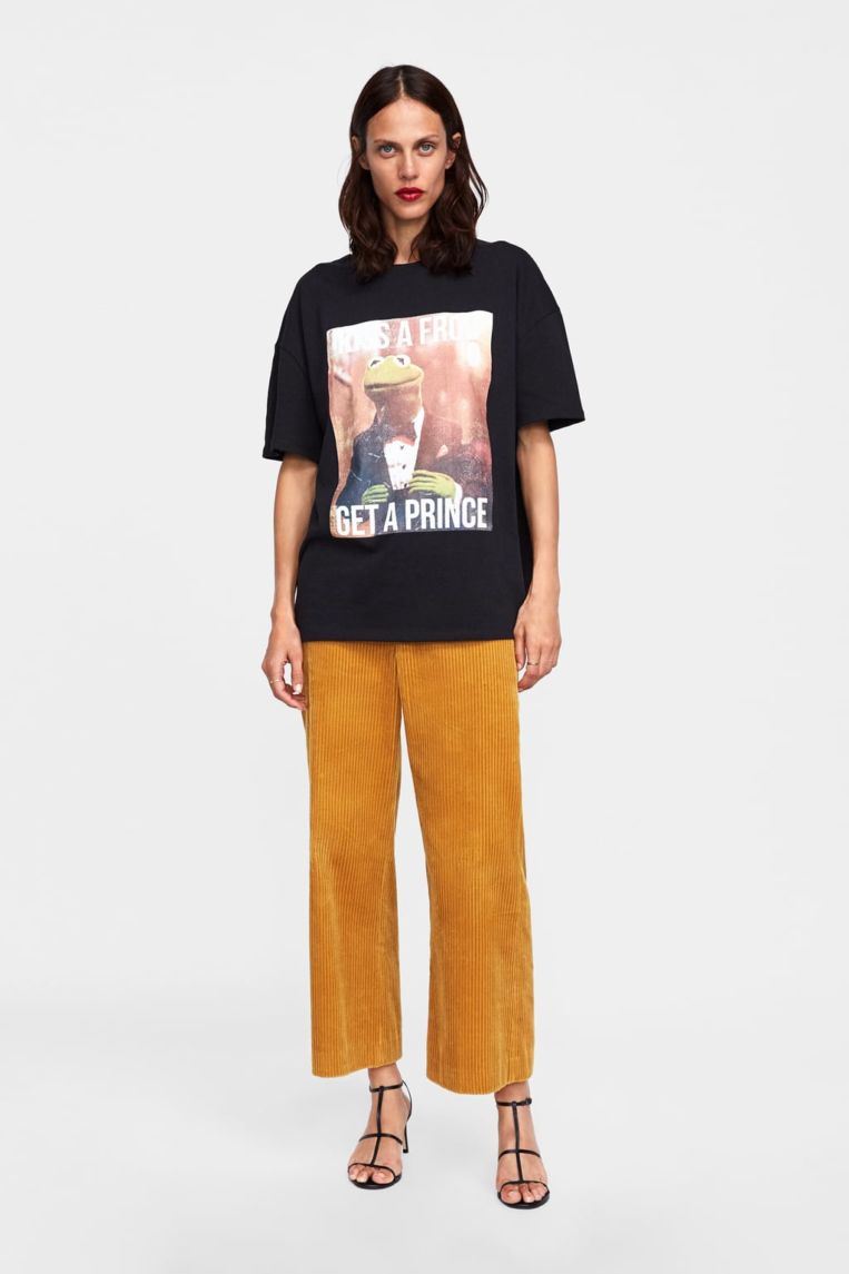 Las camisetas con estampados son una auténtica tendencia, especialmente las camisetas con estampados de personajes, como esta camiseta de cuello redondo y manga corta con estampación frontal de la Rana Gustavo.