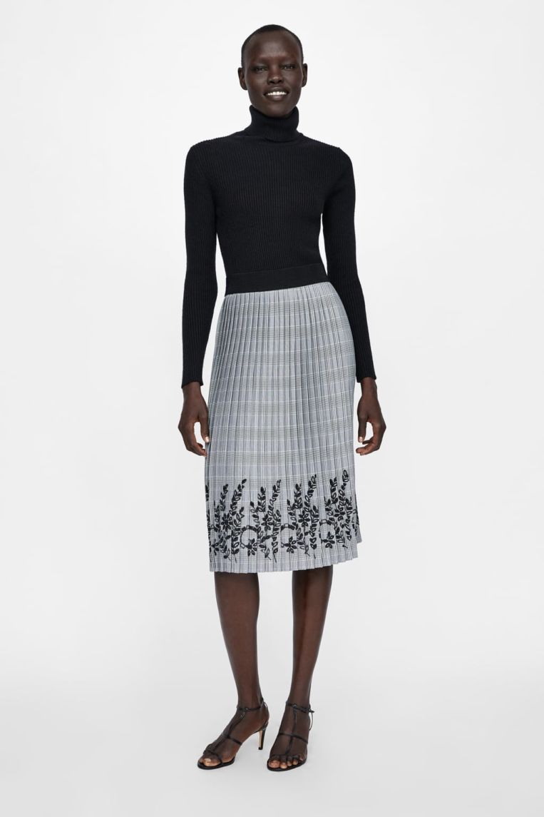 Las faldas plisadas vuelven con la vuelta al cole y es que, ¿Quién no ha llevado una de estas en su época de adolescencia? Ahora vuelven con un corte más recto y, por supuesto, más largas. Además, en esta ocasión también se presenta esta falda plisada con detalle de bordados en flor en el bajo de la prenda.