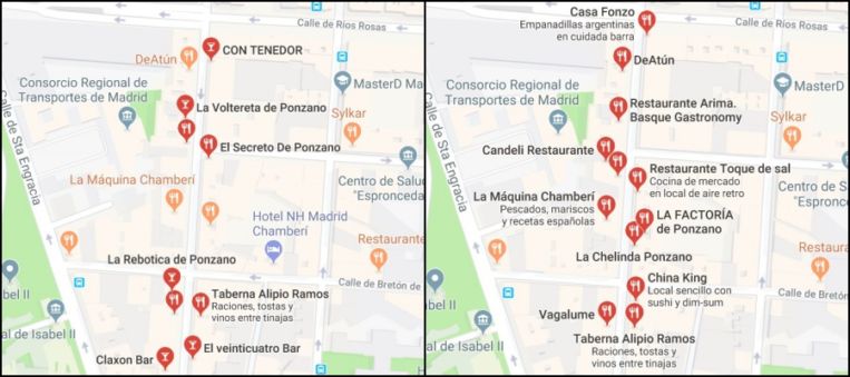 Lo cierto es que Ponzano está situado en una zona estratégica del barrio Chamberí, flanqueado por dos calles como José Abascal y Río Rosas en cada uno de sus extremos. Un lugar que reúne las condiciones perfectas para reunir a lo más granado de la capital. De hecho es muy habitual también encontrarse a personajes del mundo de la política o del espectáculo. Todo cliente con la cartera llena está bien recibido. Ponzano ya es un reclamo en sí misma. No está enfocada al turisteo y hay mucha clientela madrileña y española, según cuentan los empresarios de la zona.