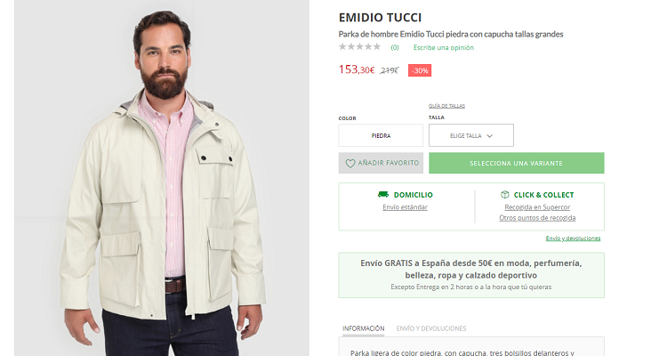 Hace algunos años, los hombres con tallas grandes no encontrábamos ropa, sin embargo, gracias a las Ofertas de El Corte Inglés en Octubre, podemos encontrar prendas como esta. Se trata de otra Parka de Emidio Tucci, pero esta vez diseñada exclusivamente para tallas grandes, es decir, de la 60 a la 64.