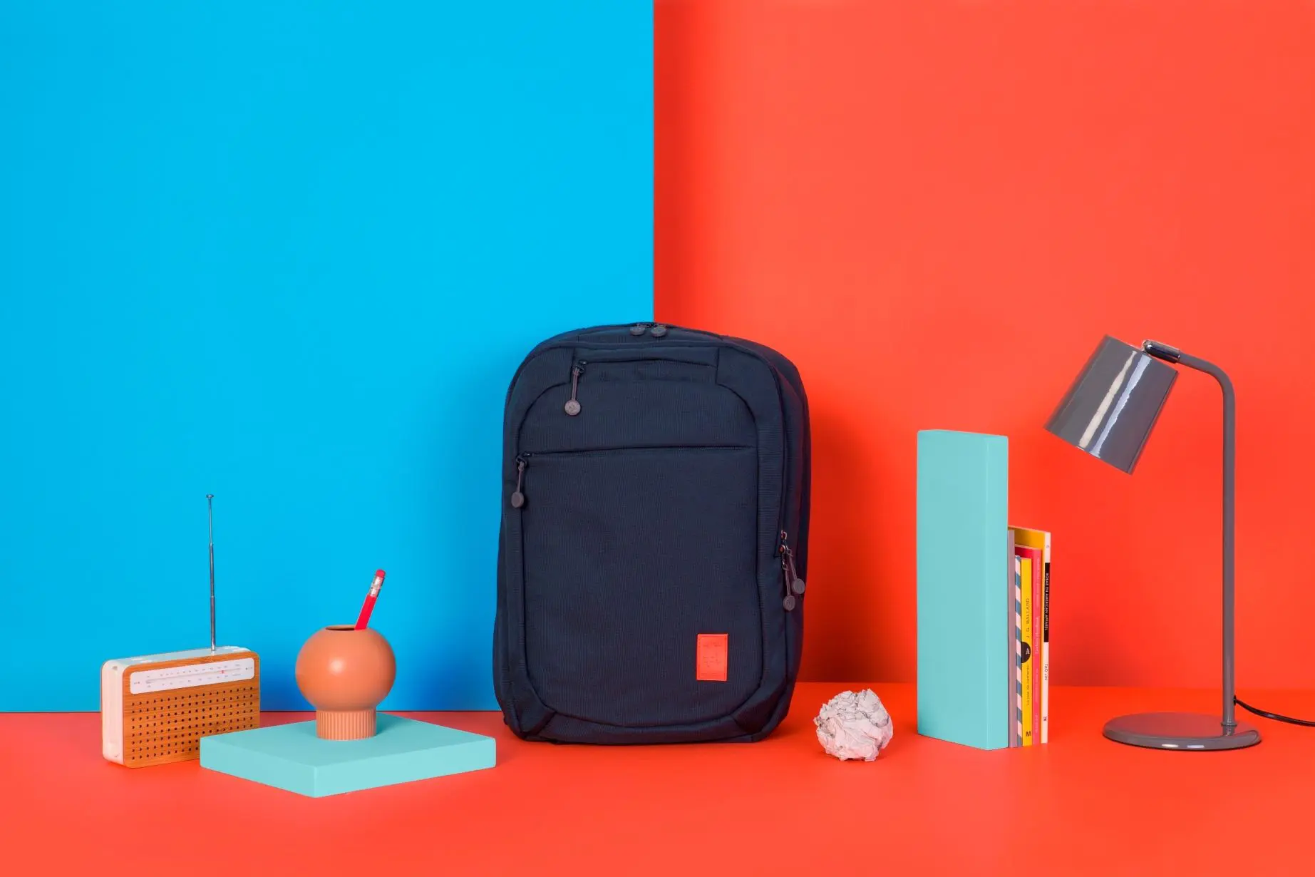 ECO Handy Backpack Night Blue: mochila práctica de uso diario. Con ciette de doble correa. Cuenta con una funda interior acolchada y un bolsillo interior con cremallera.