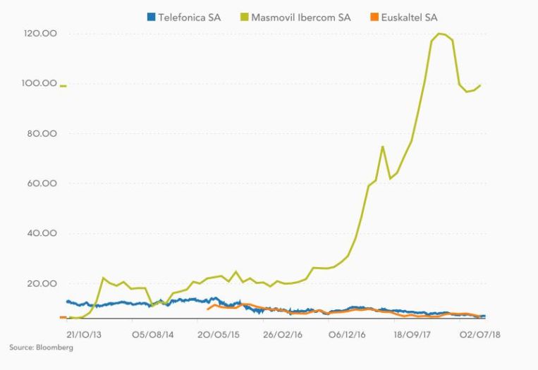 El que sigue como un tiro es MásMóvil, que en muy poco tiempo llegará a la cifra mágica del millón de clientes de banda ancha si sigue robando usuarios a la competencia. Además, la compañía dirigida por Meinrad Spenger puede presumir de no haber tenido que entrar en una guerra comercial. Sus precios, relativamente bajos, se han mantenido así desde que compró Yoigo y Pepephone. Ese le permite mostrar a sus accionistas que el crecimiento llega sobre el valor actual de sus servicios, lejos de las promociones que su competencia está usando cada vez más.
