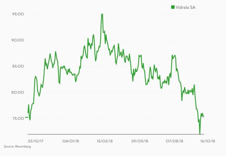 Las estimaciones de Bloomberg muestran un beneficio estimado creciente en 2018 (112 millones de euros) y 2019 (125 millones de euros) tras presentar en 2017 un saldo positivo de 90 millones. Sin embargo, el valor no frena las caídas. “Estas previsiones no son nuevas y eran el motivo por el que Vidrala ha estado cotizando a ratios tan exigentes”, explica Felipe López-Gálvez. Incluso después de las últimas caídas, añade, “la compañía cotiza a una ratio PER estimado de más de 16, que nos indica que la compañía está cara y que las expectativas quizá son demasiados elevadas”.