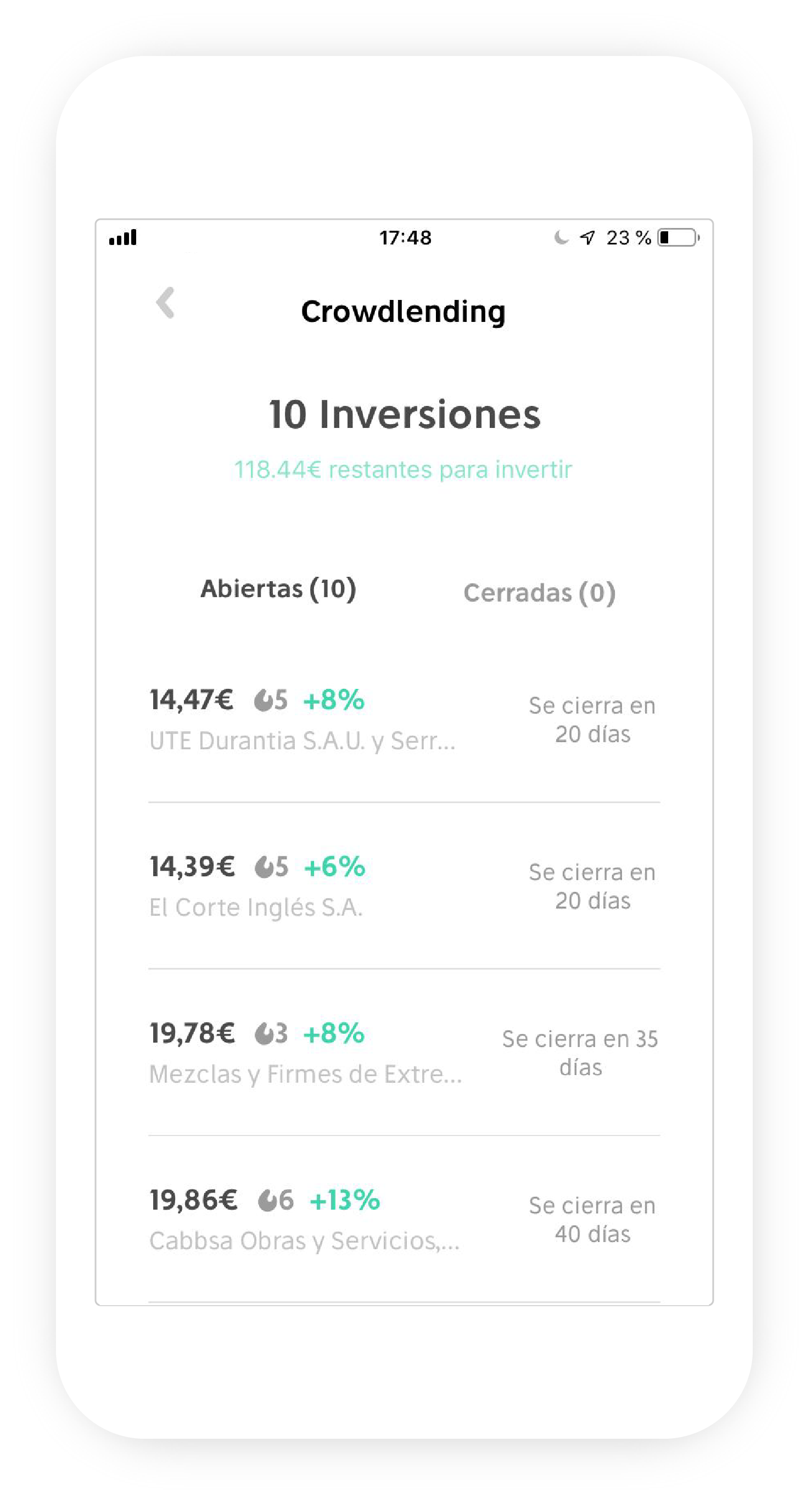 La primera de ellas, la inversión mediante Crowdlending, ya está a pleno rendimiento dentro de la app. Esta modalidad consiste en financiar a empresas o proyectos mediante un buen número de inversores en lugar de por un único inversor o un número muy reducido de ellos. Para poder ofrecer dicho servicio, Goin ha forjado una alianza estratégica con Circulantis, una de las compañías especializadas en crowdlending más activas de España. La citada compañía le brindará toda la seguridad, background y reputación necesarios para poder sacar el mayor provecho de esta herramienta de inversión. Desde 2014 Circulantis ha conseguido créditos por valor de más de 49 millones de euros, más de 4.000 operaciones cerradas y con una tasa de morosidad del 0,38%.
