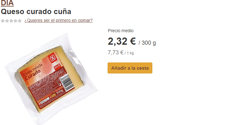 Su precio, es de 2,32 euros por 300 gramos de queso, algo que sale a 7,73 euros el kilo, muy barato para ser queso curado.De este modo, el supermercado español aparece por tercera vez (aunque lo de la pasta fuera por escaso margen), y es junto a Carrefour, el ganador en la pelea de precios entre los 4 grandes supermercados. De este modo, y de sorpresa, Mercadona y Lidl no eran tan baratos como parecían, pero han sido dignos competidores.