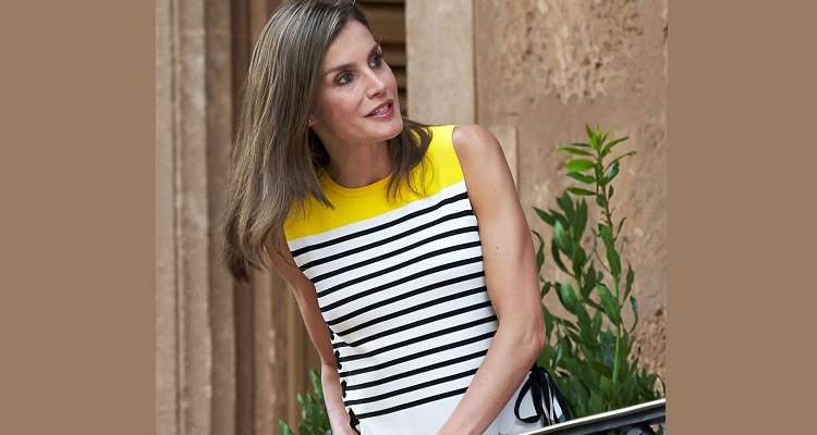 De nuevo, vamos a pasar de un caro vestido, a una prenda informal para el verano. El top de rayas de Letizia suele usarlo mucho cuando va de vacaciones a Palma, con su familia. Es un top bonito, pero informal, el cual además da una imagen de cercanía a la Reina.