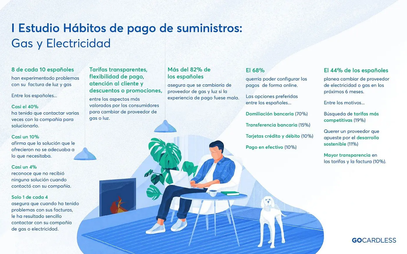 8 de cada 10 usuarios españoles aseguran que ha tenido problemas con su proveedor de gas o electricidad por culpa de la factura, según una reciente encuesta llevada a cabo por GoCardless, startup del sector Fintech dedicada a la gestión de cobros por domiciliación bancaria, a 1.000 personas sobre sus hábitos de pago de los principales suministros.