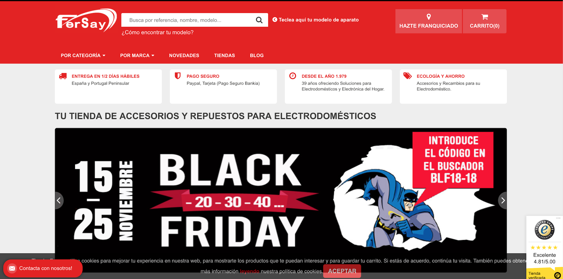Fersay, marca especialista en nuestro país en la venta de accesorios y repuestos para electrónica y electrodomésticos del hogar, inició ayer su campaña para el Black Friday 2018.