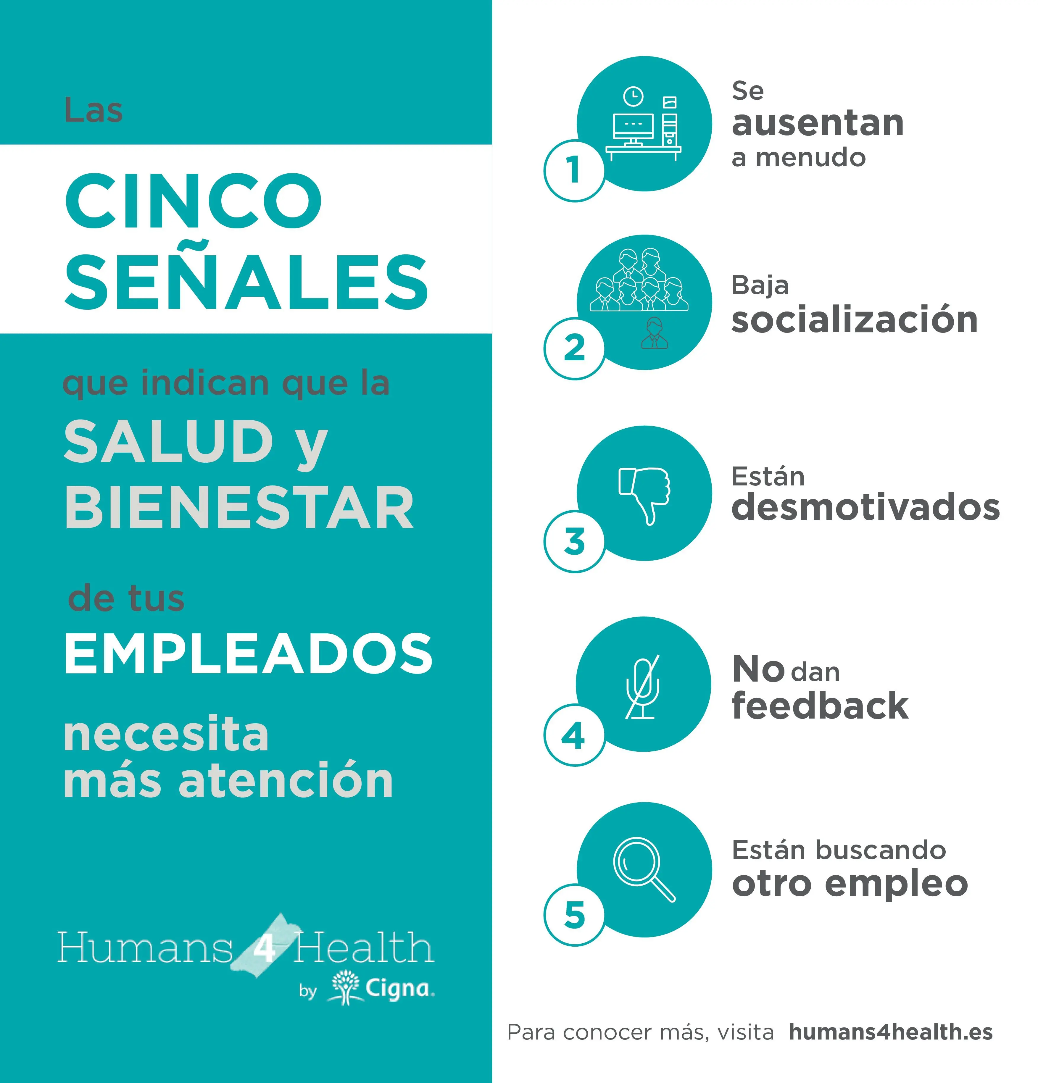 Según el último estudio de Cigna, ‘360º Well-Being Survey’, las empresas españolas obtienen un aprobado alto en el cuidado de sus plantillas. Para revertir esta situación, es preciso estar alerta y tomar el pulso del estado de salud y bienestar de los empleados. El absentismo, la falta de socialización o la desmotivación son algunos de los indicios que demuestran la necesidad de impulsar y reforzar los planes centrados en la salud