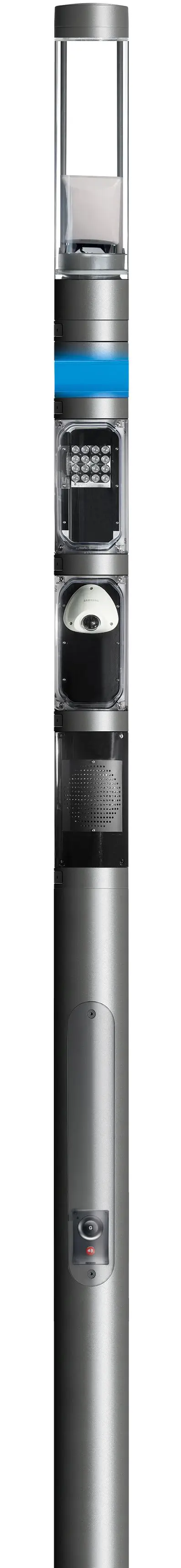 Shuffle Security ofrece múltiples opciones de seguridad en redes de iluminación LED, dentro de sus funcionalidades se encuentran; CCTV de 360°, intercomunicador SOS y anillo de luz para una mayor seguridad