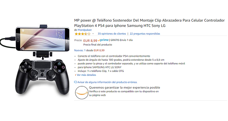1Adaptador mando de PS4 a móvil Amazon Prime