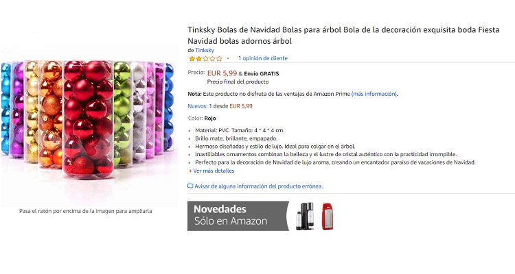 En Amazon, se ha adelantado la navidad, y de este modo, podemos ir pensando ya en comprar las decoraciones de navidad. Tenemos en primer lugar, las bolas de navidad como principal decoración, las cuales pondremos alrededor de nuestro árbol. Este material es bonito, cuesta poco dinero y por ello, es imprescindible.