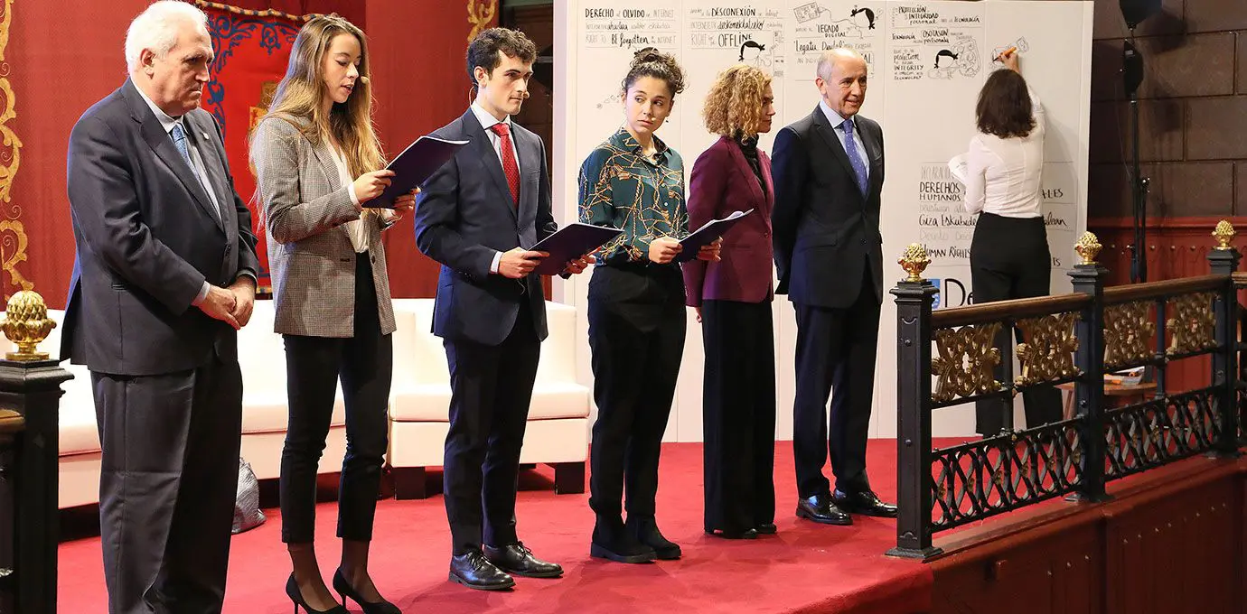 Tras las palabras del rector Guibert, intervenieron la ministra Meritxell Batet y el consejero Josu Erkoreka. A continuación, tres estudiantes de la Universidad de Deusto, Aitziber Agirre, Jaime Baniandrés y Martina Vellani, han realizado la lectura de la Declaración, en castellano, euskera e inglés. La Declaración incluye 16 derechos que defienden los siguiente: