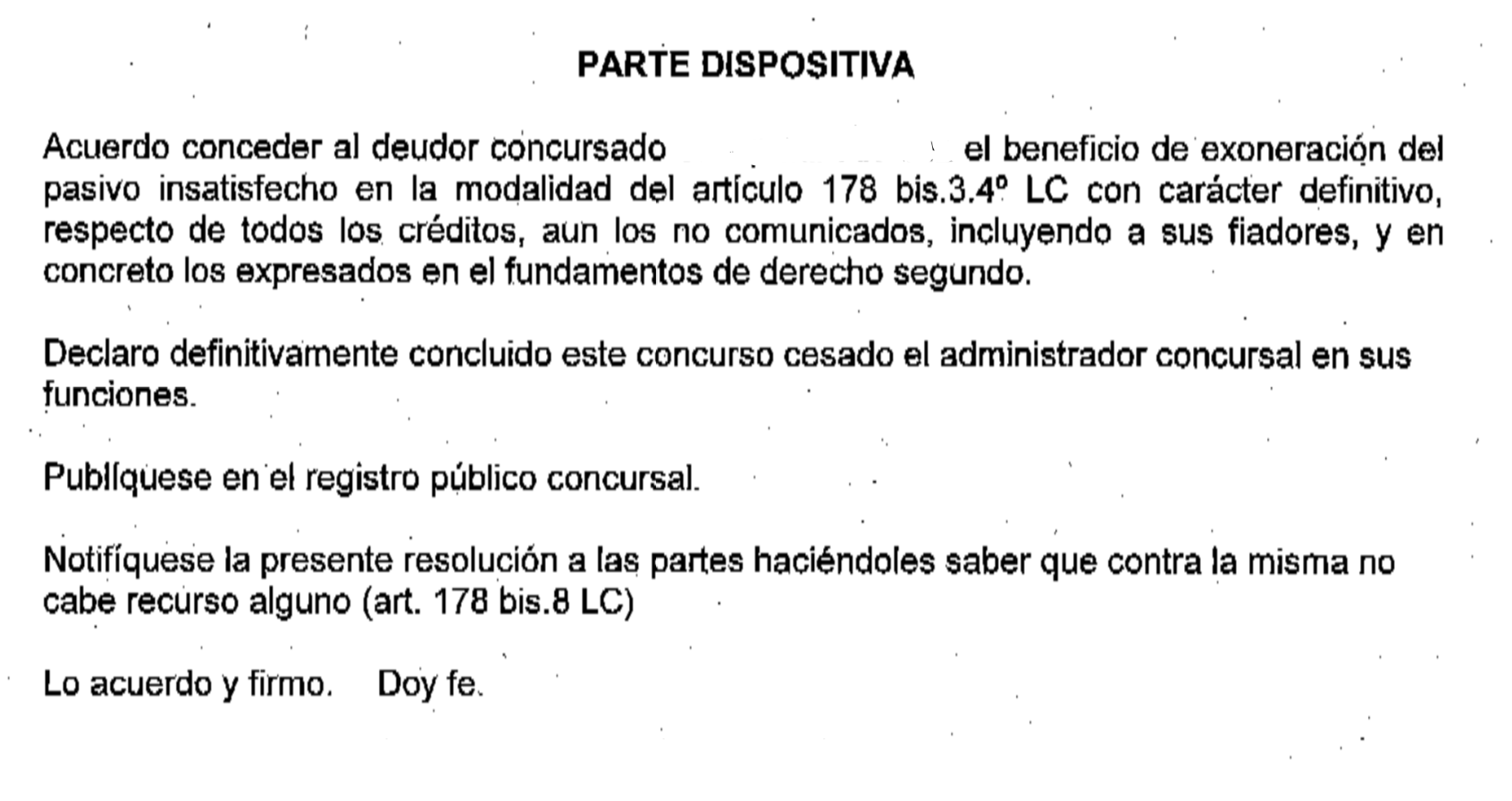Las deudas ahora perdonadas por auto judicial habían sido contraídas con Coexu (préstamo personal y tarjeta de crédito), BBVA (préstamo personal), General Electric (tarjeta de crédito), Catalunya Caixa (préstamo) y Bancaja (préstamo), ALD Automotive (préstamo), CaixaBanc (Hipoteca), Banco Santander (préstamo), Banco Sabadell (préstamo), Comercial de Maquinaria (crédito), Cetelem Lindorff (préstamo personal).