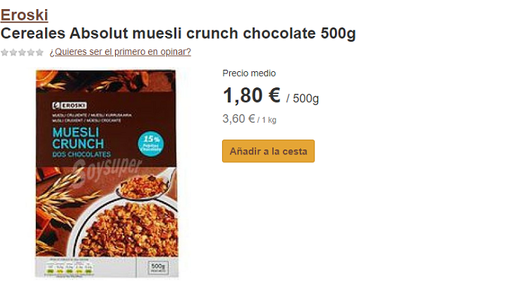 Lo mejor es sin duda, su precio, pues por tan solo 1,80 euros, tendremos un paquete de tamaño familiar de 500 gramos, el cual nos servirá para poder desayunar de una forma algo más saludable, sin tener que rascarnos demasiado el bolsillo.