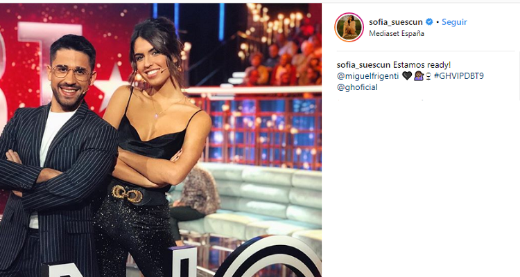 Sofía Suescun volvió a llamar la atención en otra gala de GH VIP, en esta ocasión, publicó esta foto junto a Miguel Frigenti. Sofía lucía un conjunto espectacular, con un top de tirantes y unos leggins, que según los comentarios de la foto son de Zara y en concreto «detalle brillo 4758/210».