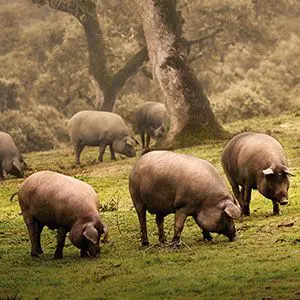 Lo primero es saber qué es la montanera para entender su importancia en el producto final, el jamón ibérico de bellota. La montanera es el periodo que va de noviembre a febrero y en el que los cerdos que darán los jamones de bellota son criados en las dehesas en libertad. Cuando llega noviembre, los alcornoques están cargados de bellotas que caen de manera natural, los pastos están verdes y frescos y hay un sinfín de hierbas que contribuyen a la perfecta alimentación del cerdo. Así, los cerdos ibéricos van paseando por el campo y alimentándose de manera ordenada, de tal manera que en 4 meses incrementan su peso un 50%.