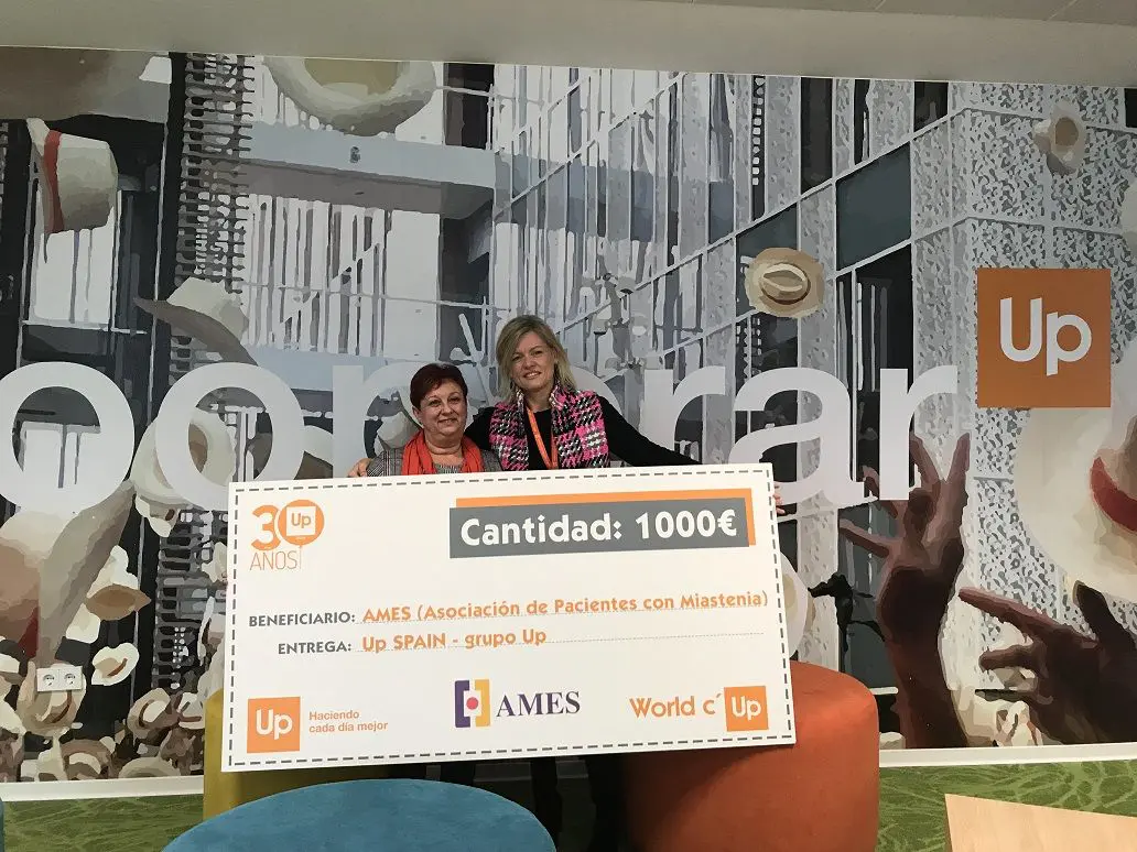 Up SPAIN, especializada en soluciones y beneficios sociales para empleados de todo tipo de empresas, que tiene como producto estrella Cheque Gourmet, entrega un Cheque Solidario a la Asociación de pacientes con Miastenia