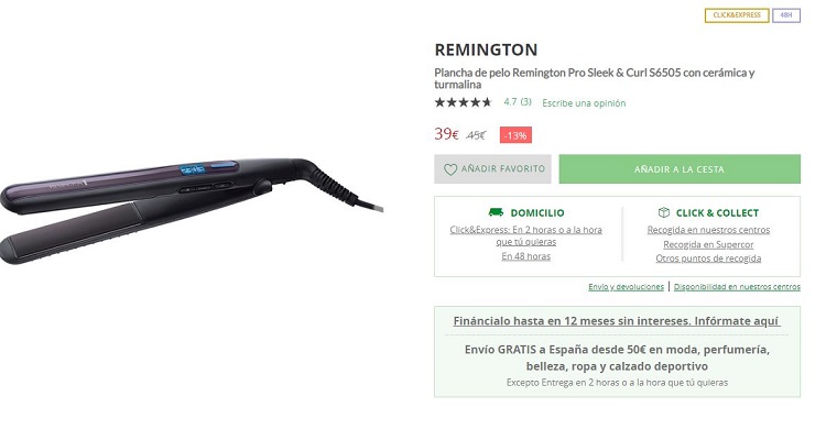 Las famosas planchas de pelo Remington, son un regalo perfecto y un chollo para navidades en El Corte Inglés. Estas planchas, tienen cerámica y turmalina, con un diseño curvo con guías de sujección, ideales para rizar y alisar. Tiene función turbo, calentamiento rápido y un apagado automático de seguridad si no se usa en 60 minutos.