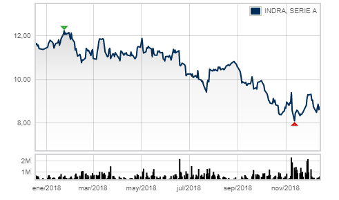 Los analistas entienden que por encima de ocho euros no habría que deshacer la posición, pero otra cosa es invitar a decantarse por Indra. De momento, se mueve por el filo de la navaja, ya que su acción está en 8,5 euros, muy lejos de los 12,2 euros que tuvo a comienzos de año. “No tomaríamos posiciones hasta que llegara a los 9,97 euros”, concreta Susana Felpeto.