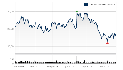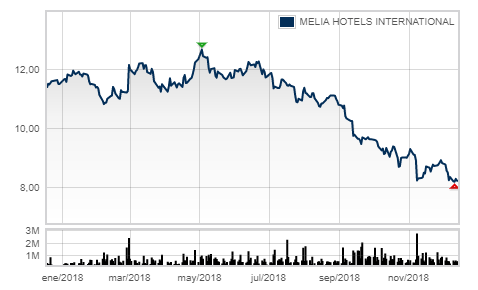 Aparte de este hecho, Melía está mejor situada para evitar la salida que Técnicas Reunidas, ya que tanto su capitalización como el volumen negociado es mayor. Aunque su dependencia del sector exterior es importante, y el tipo de cambio le ha hecho perder muchos ingresos (por no hablar de los ‘chalecos amarillos’, que han reducido la ocupación de sus establecimientos en Francia un 24%), tiene muchos edificios en propiedad. “Si le va mal puede poner a la venta algunos hoteles para reducir el activo y conseguir liquidez. Así podría tener un beneficio operativo ratio sobre deuda de dos veces ebitda”, concreta Darío García.