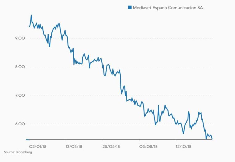 Mediaset no está sola en este calvario bursátil. Sin la exposición internacional que aporta el Ibex 35, Atresmedia registra peores números aún que la cadena con sede en Fuencarral. En concreto, las acciones del grupo ubicado en San Sebastián de los Reyes han caído un 48,64% desde el inicio de 2018. Por tanto, parece más un problema sectorial que individual de la compañía de origen italiano.