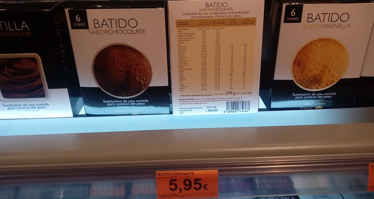 El precio es de 5,95 euros por cada 6 sobres, es decir, que te sale a euro la comida. El modo de empleo es tomar el batido y no comer. El batido te proporcionará las vitaminas y minerales necesarias para la alimentación de una persona promedio, bajando las calorías y logrando adelgazar. Yo no estoy a favor de esos métodos para adelgazar, pues no adelgazar por el batido, sino por la restricción calórica. Sin embargo, si lo vas a hacer, mejor comprar el batido de Mercadona que es más barato.