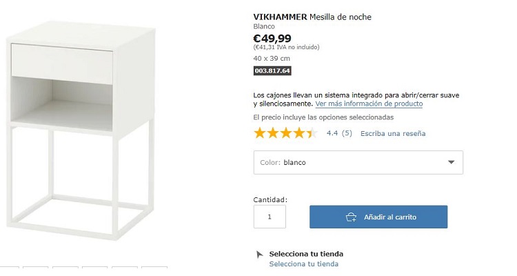 Vamos a finalizar con el último producto destacado que solo podemos encontrar en Ikea. Estamos ante una mesilla de noche vikhammer, con cajones con un sistema especial para cerrar y abrir muy suave y de forma silenciosa, con el fin de no molestar por las noches. Lo tenemos en dos colores, blanco y negro.