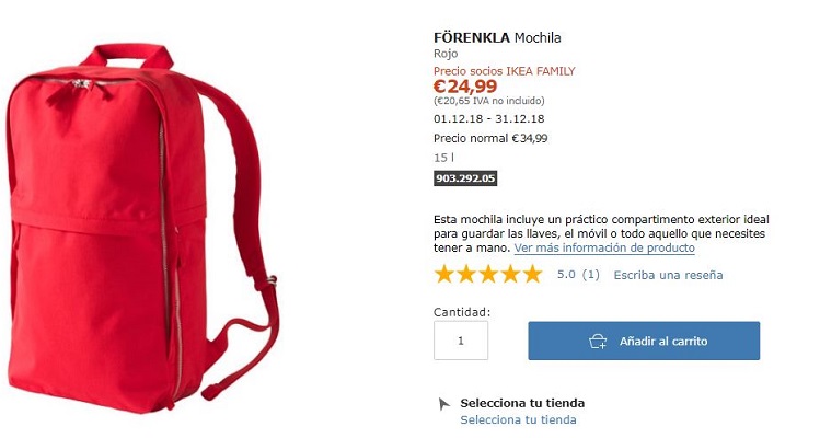 La mochila FÖRENKLA de Ikea, es otro producto que te encantará. Tenemos una mochila con compartimento exterior para guardar las llaves o el móvil. Además, se puede colgar del asa de la maleta, algo que te ayudará a moverte mientras estés viajando. Finalmente, destacar que lleva una protección acolchada, ideal para llevar ordenadores.