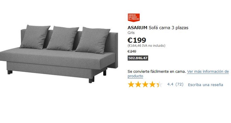 Ahora vamos con el sofá cama Asarum de 3 plazas de Ikea. Este sofá, es ideal para dormir en el salón y para las visitas. Por el día, es un sofá, con un compartimento debajo para guardar ropa de cama. Por la noche, se convierte en una cama, ideal para las visitas o para cuando tu pareja te mande a dormir al sofá.