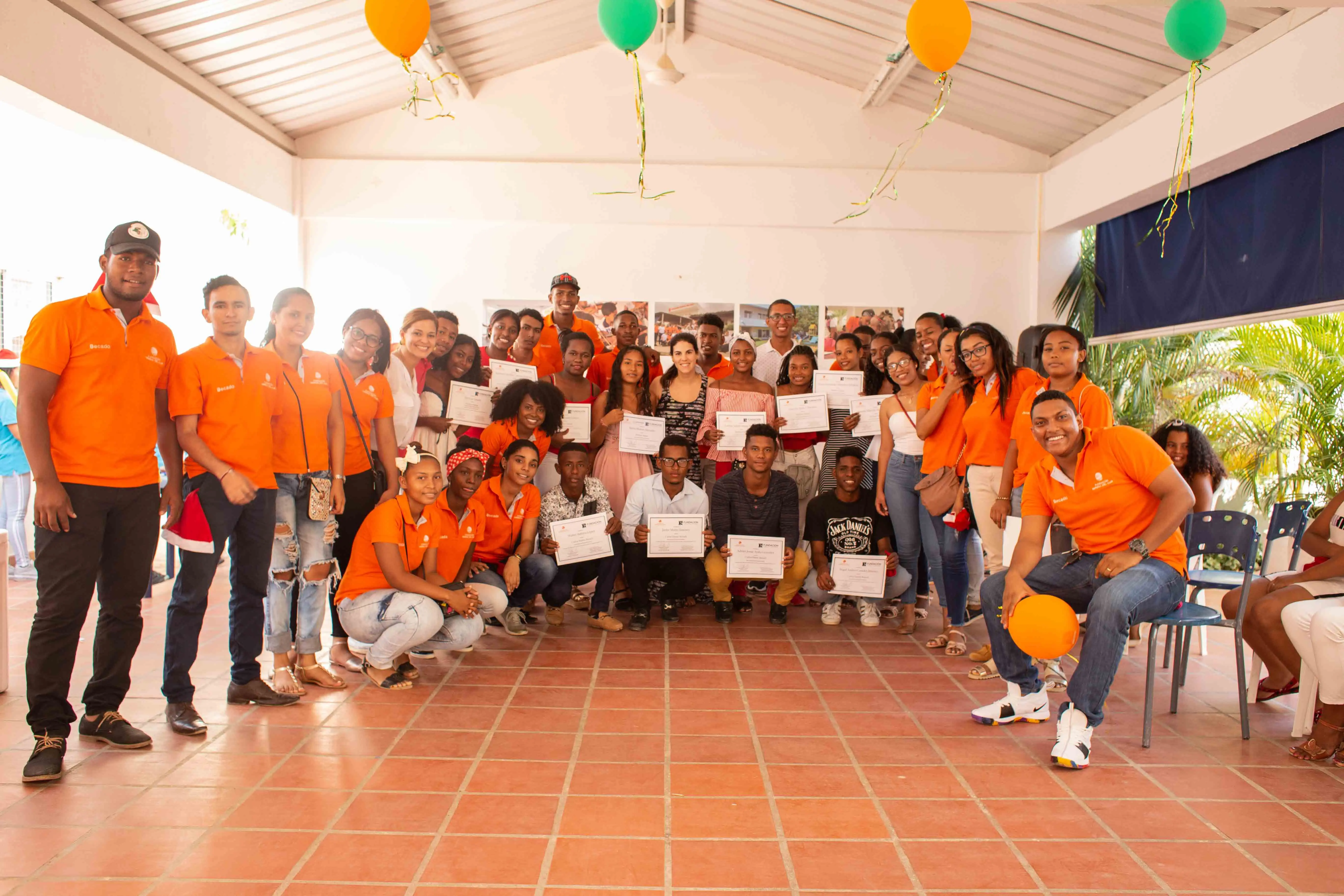 En la fotografía aparece el grupo de becados junto a Andrea Echavarría, vicepresidente ejecutivo de la Fundación Carlos y Sonia Haime e Isabel Mathieu, directora social de la Fundación Serena del Mar.