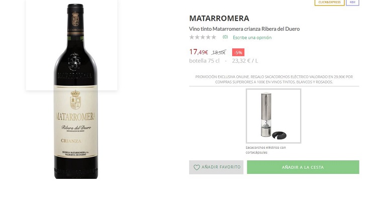 Este vino, que es 100% tempranillo, es barato, pues cuesta 17,49 euros la botella, saliendo a 23,32 euros el litro. Estamos ante uno de los vinos más baratos de la lista y ante un producto ideal para acompañar las carnes rojas. Se sirve a 17 y 18 grados y contiene un 14,5% de volumen alcohólico.