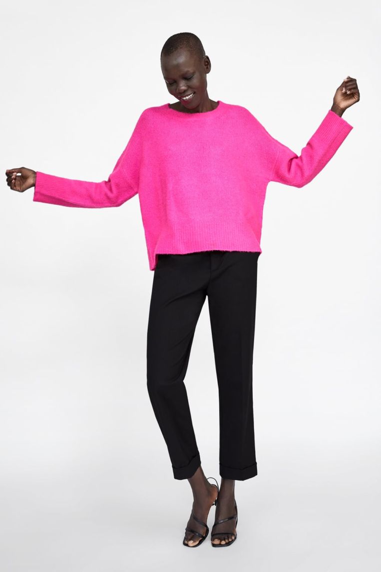Este jersey amplio de punto con cuello redondo y manga larga es otra de las propuestas de Zara para las primeras semanas del 2019. Es una prenda cómoda con la que podrás realizar infinidad de combinaciones. Está disponible en cuatro colores diferentes (rosa flúor, arena, negro y gris) y tiene un precio de 25,95 euros.