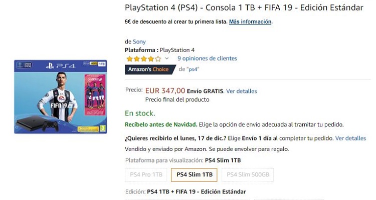 La PS4 o Playstation 4, es la consola más vendida en nuestro país. Además, suele ser el regalo preferido por mucha gente, pues jugar a la consola más vendida con tus amigos, sin duda es una delicia. En Amazon lo saben, y por ello te preparan este pack con el juego más vendido, el Fifa 19.