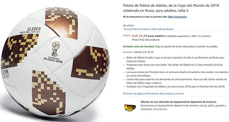 El balón cuesta 26,99 euros, y es perfecto para todas las edades. De este modo, tus hijos y tus hijas que sean amantes del fútbol, sin duda amarán este regalo. De nuevo, gracias a Amazon has quedado como un Rey Mago.