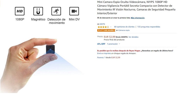 Micro Cámara espía en Amazon