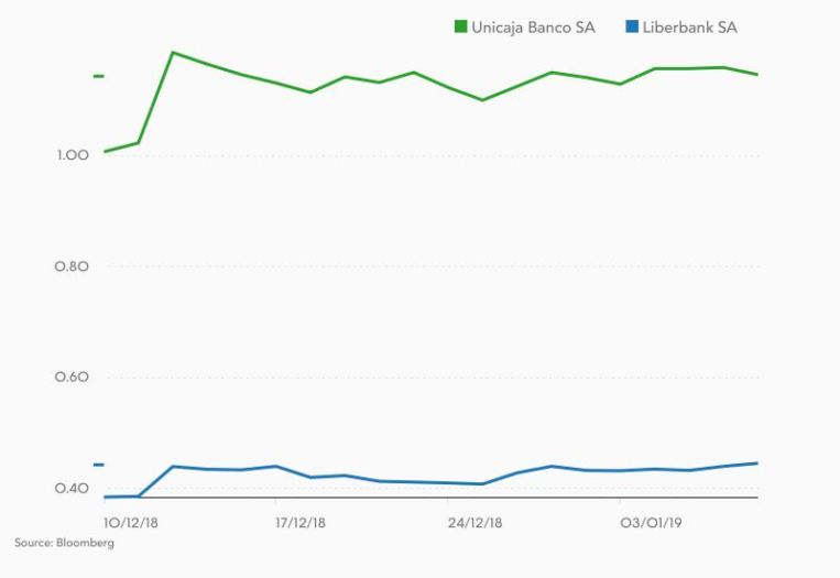 En paralelo a las negociaciones entre los dos bancos navegan sus cotizaciones en el Mercado Continuo. Tras el subidón inicial de la noticia, las acciones de ambas entidades han encontrado un fuerte inversor común: UBS. En un mismo día (4 de enero de 2019), el banco de inversión suizo aumentó su posición en Unicaja y Liberbank.