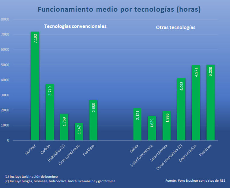 Para la industria, así como las empresas que quieren seguir rentabilizando este sector, los datos de Red Eléctrica de España analizados por Foro Nuclear reflejan que las centrales nucleares han sido, una vez más, la fuente que más horas ha operado en 2018, concretamente 7.192 horas de las 8.760 que tiene el año.