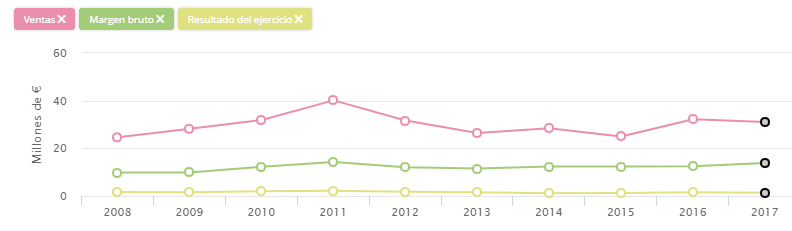Durante 2017, Comunica+A tuvo unas ventas de 32,9 millones de euros, y un margen bruto de 15,8 millones (+4,5% respecto a un año antes). El resultado antes de impuestos fue de 1,82 millones de euros, y el resultado del ejercicio de 1,37 millones, según Insight View. Sus oficinas de París, Madrid, Lisboa y Lima cuentan con una plantilla de 254 empleados, y un 10% son menores de 25 años.