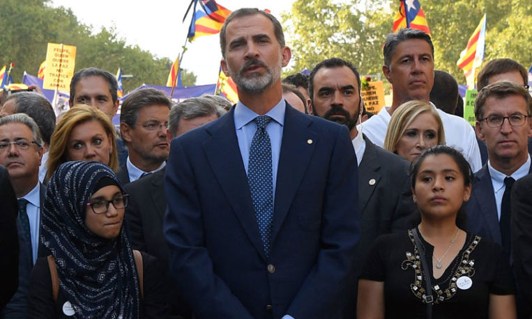 En el año 2017, hubo unos atentados en Barcelona, los cuales dejaron bastantes muertos y a la sociedad española bastante preocupada. Para condenar los atentados, se celebró una manifestación, a la cual acudió el Rey Felipe VI, como una medida para solidarizarse con las víctimas de este terrible incidente.