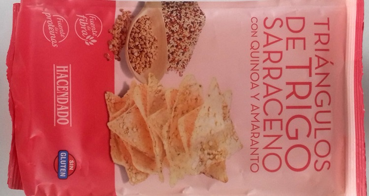 Si te gusta picar entre horas, Mercadona te ofrece una alternativa más sana que de costumbre. Se trata de los triángulos de trigo sarraceno, con quinoa y amaranto. Su composición es de un 79% de trigo sarraceno, un 5% de quinoa, y un 5% de amaranto. El resto de ingredientes, son simplemente arroz, aceite de maíz y sal marina.