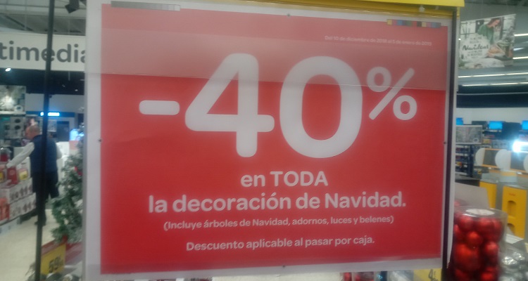 Como decía el Rey Juan Carlos, en estas fechas tan señaladas, se común decorar la casa al estilo navideño. De este modo, el primero de los chollos de Carrefour, Eroski y DIA, tiene que ver con ésto. En Carrefour, tenemos un descuento del 40% en toda la decoración de Navidad.
