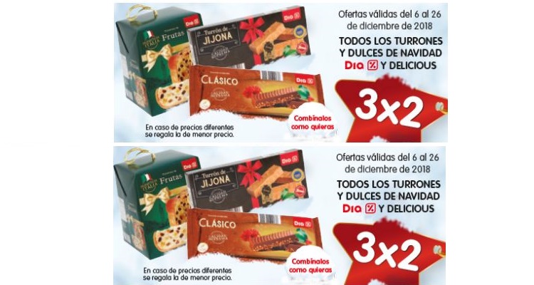 Este descuento, aplicable del 6 al 26 de Diciembre, te permite tener descuento en todos los turrones de este supermercado, combinándolos como quieras. De este modo, por cada 3 tabletas que compres, te van a regalar la de menor precio. Viendo esta oferta y teniendo en cuenta que el turrón de DIA ya es barato de por si, es buena idea comprar este dulce aquí.