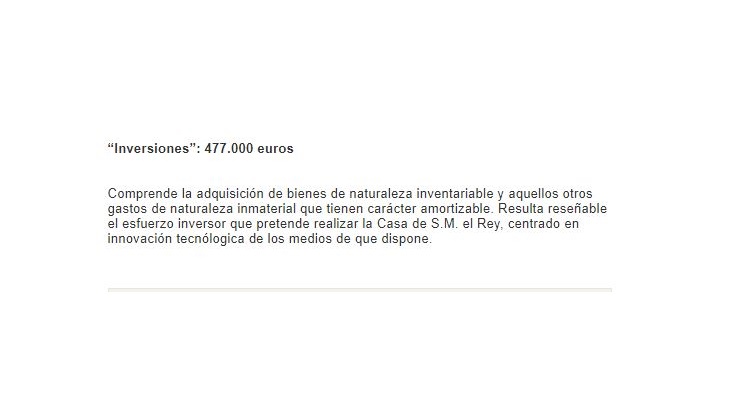 Generalmente, estas inversiones son para continuar con la labor de modernizar la Casa del Rey, mejorando los medios de los que dispone, comprando nuevos medios de innovación tecnológica.