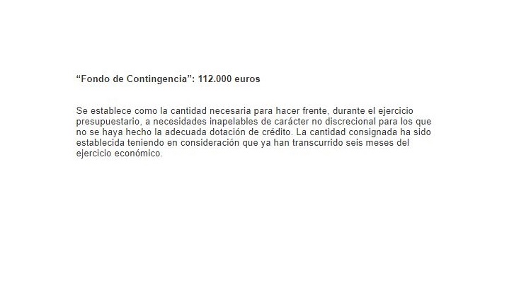 El siguiente apartado de los presupuestos de la Casa del Rey, es el llamado Fondo de contingencia, el cual ha sido establecido en 112.000 euros en el ejercicio de 2018. Este fondo, es una especie de hucha, que está destinada a gastos imprevistos que ocurran, con la finalidad de evitar que se descuadren las cuentas.