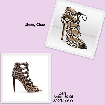 Que Zara, al igual que otras tantas tiendas low cost, copian y se inspiran modelos de las grandes firmas es un hecho y lo sabe hasta el Papa. Pero en ocasiones esas copias y esa inspiración es tal que terminan vendiendo productos exactamente iguales. Como si de gemelos se tratasen. En esta imagen ves la similitud de los zapatos de Zara y los de la marca de lujo Jimmy Choo. Como puedes imaginar el precio entre ambas poco tenía que ver.