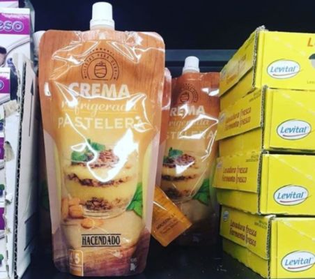 Hacendado también ofrece desde hace algún tiempo una crema pastelera refrigerada lista para usar. Es cierto que es bastante útil ya que te puede salvar de un apuro a la hora de rellenar un bizcocho pero, para ser sinceros, su sabor no es el mejor.