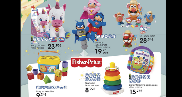 Ahora, en las novedades de Eroski y Mercadona, vamos con juguetes para los más pequeños de la marca Fisher-Price. Aquí, de nuevo tenemos grandes variantes de juguetes míticos, como los bloques infantiles, un cancionero interactivo, superhéroes gusy luz, y como no podía ser de otro modo, a Mr Potato, entre otros.
