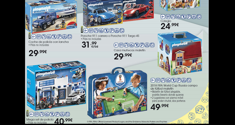 Los Playmobil (antes conocidos como Famobil), son unos juguetes que no necesitan presentación, y que son legendarios. Por suerte para los más pequeños, se siguen vendiendo, y en las novedades de Eroski y Mercadona, vamos a ver que en Eroski todavía los tienen. Tenemos variedades como el coche de policía, el Porsche 911, un futbolín del mundial y un mega set de policía.